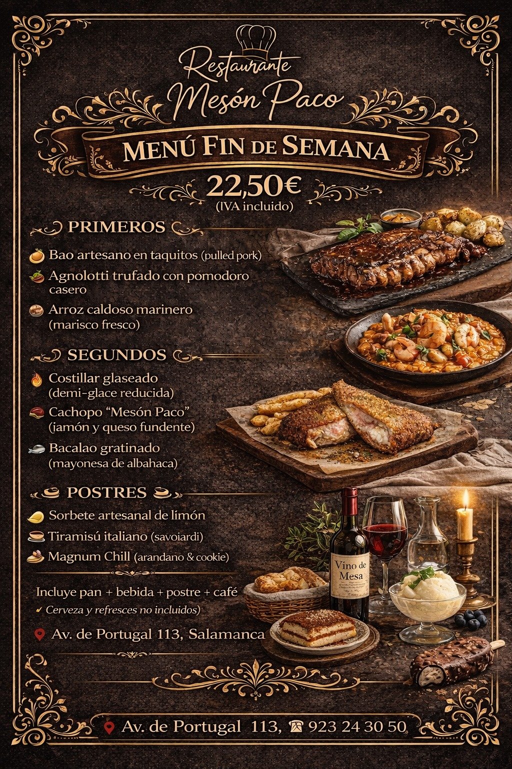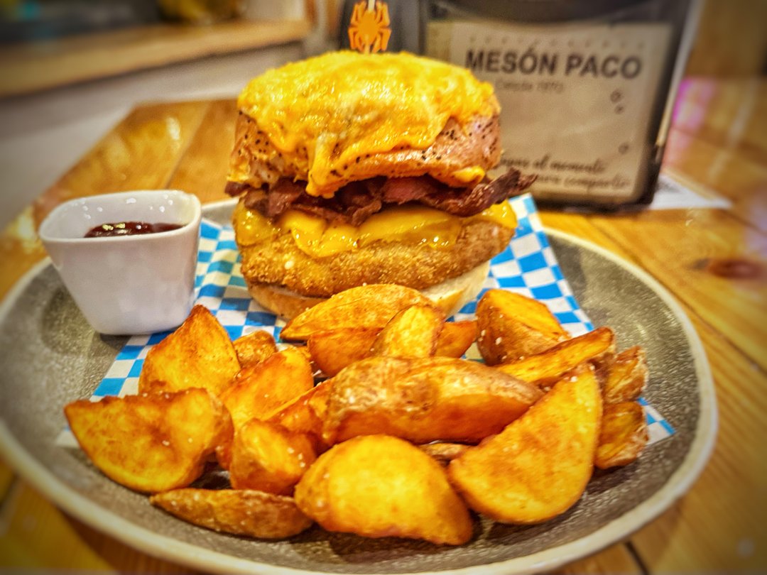 En Restaurante Mesón Paco Salamanca, les invitamos a descubrir el genuino sabor de nuestra cocina casera española, variadas tapas y excelentes hamburguesas, siempre elaboradas con un producto excepcional. Ubicados en el corazón de Salamanca, nos esforzamos en cada detalle para ofrecerles una experiencia culinaria memorable, en un ambiente acogedor y familiar que define nuestro restaurante Salamanca. Nuestro compromiso es con la calidad del producto restaurante Salamanca y el trato cercano, déjate sorprender por nuestra dedicación. Visítenos para disfrutar de nuestra pasión por la buena mesa y permítannos ser parte de sus mejores momentos en Salamanca.